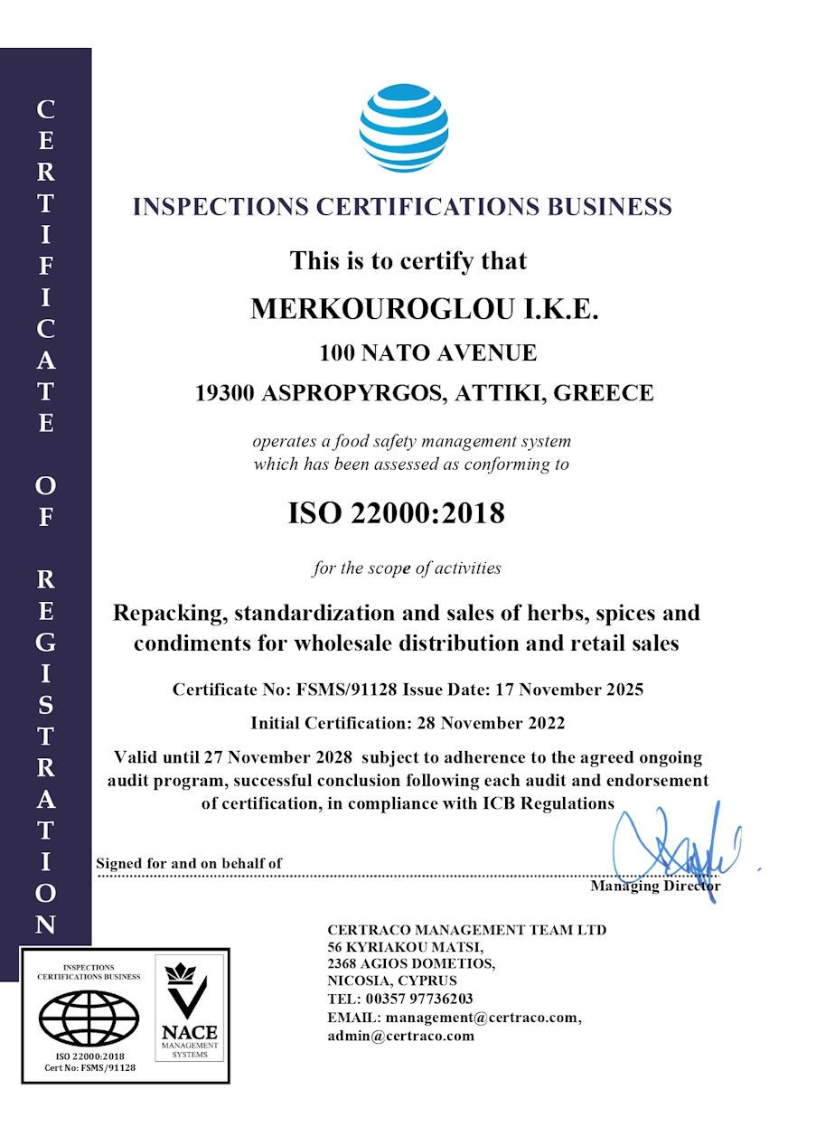 In the context of the proper operation and the provision of good and integrated services Merkouroglou company proceeds with the certification of the following procedures ensuring the best possible result. See our company certificates!
